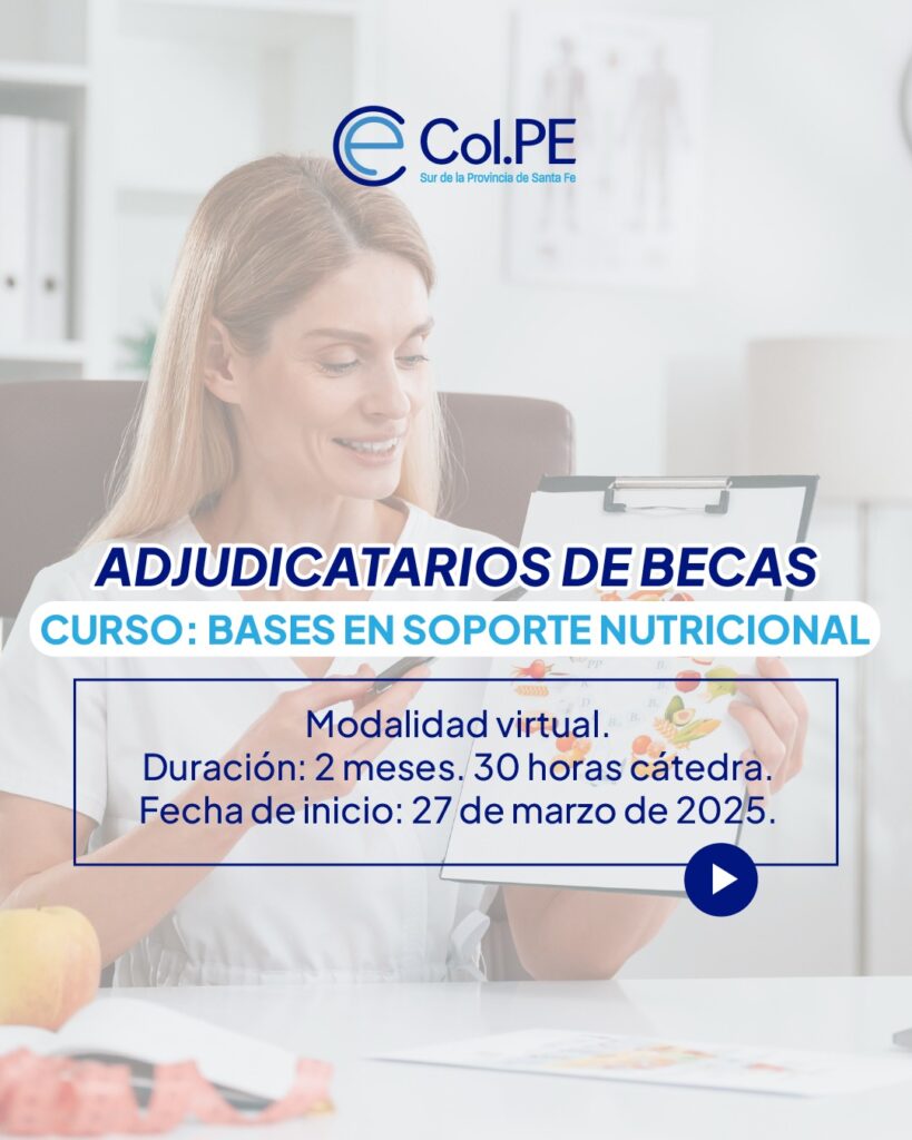 CURSO BASES EN SOPORTE NUTRICIONAL EL COLEGIO OFRECE BECAS Curso Bases en Soporte Nutricional Modalidad virtual Duración: 2 meses. 30 horas cátedra.Fecha de inicio: 27 de Marzo de 2025Fecha de finalización: 26 de Mayo de 2025Modalidad del curso: Virtual. El colegio ofrece 5 (CINCO) becas consistentes en la inscripción. CIERRE DE INSCRIPCIÓN: 18 de […]