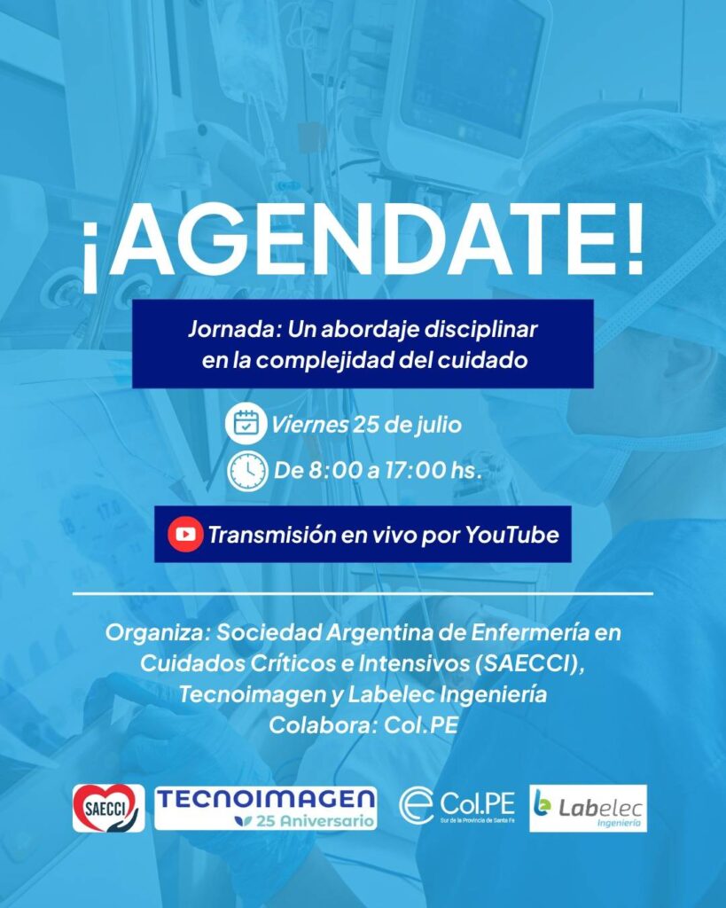 Jornada Actualización Enfermería en Cuidados Críticos: “Un abordaje disciplinar en la complejidad del Cuidado” 🗓 Fecha: Viernes 25 de julio 2025🕕 Horario: de 8:00 a 17:00 hs 📲 Modalidad: Virtual -Sin inscripción Organizan:Sociedad Argentina de Enfermería en Cuidados críticos e Intensivos (SAECCI)Tecno ImagenLabelec Ingeniería Auspicia:Colegio de Profesionales en Enfermería del Sur de la Pcia. de […]